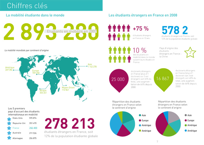 Création de l’identité visuelle de la page chiffres clés de la brochure institutionnelle de Campus France.